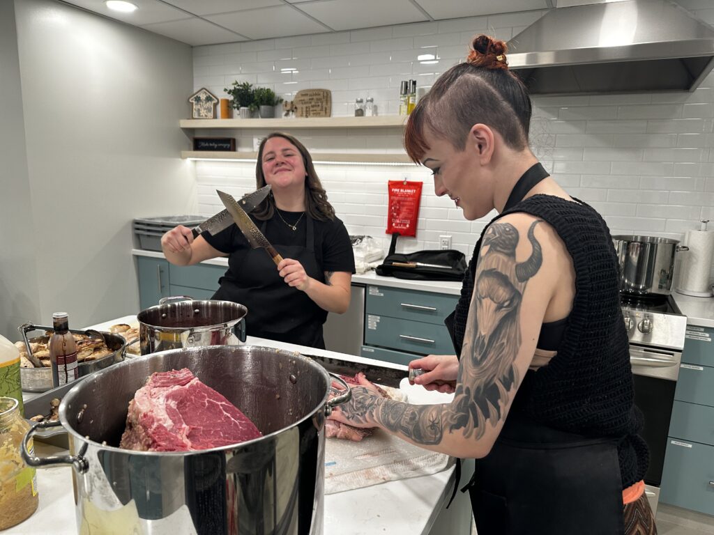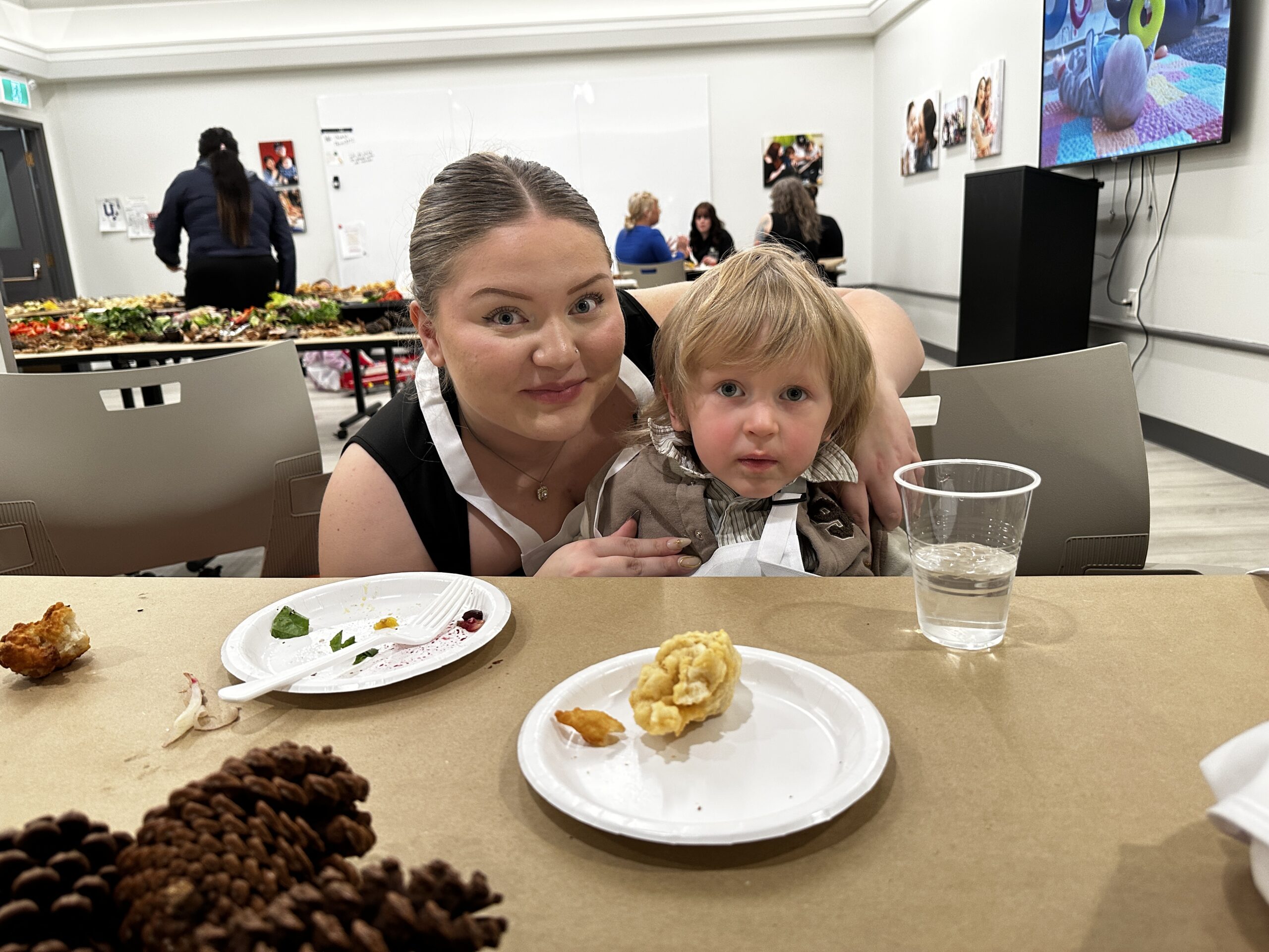 Our Community Kitchen was alive with energy as Canada’s Top Chef finalist, Chef Shane Chartrand, joined Terra participants for a full day to prepare a beautiful meal for guests. One Terra participant, Rowen, an aspiring culinary student, began her day early, eager to learn from Chef Shane and share her love of cooking. All together, they created dishes that not only filled the room with amazing aromas but also symbolized the nurturing and growth that happens at Terra every day.